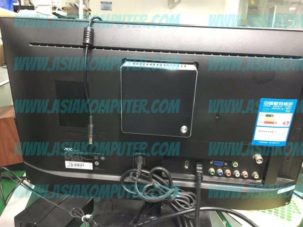 Ada port HDMI dan VGA, bisa langsung colok ke monitor VGA.